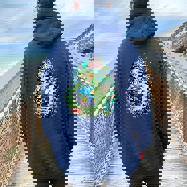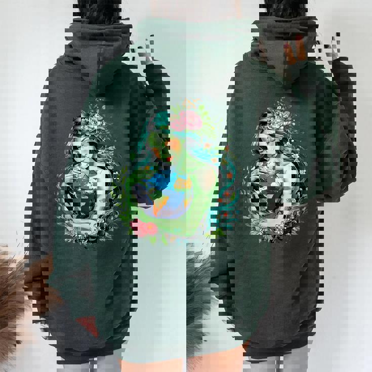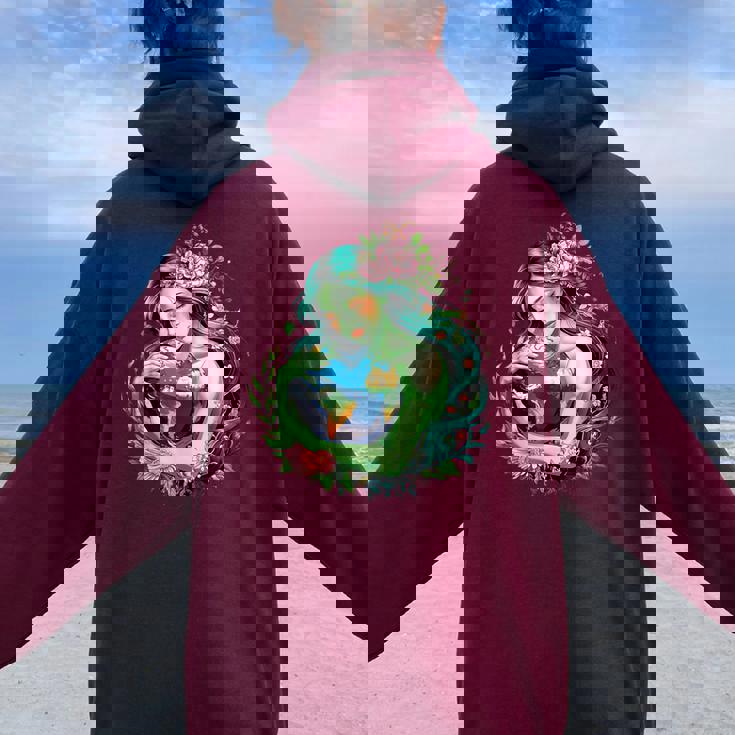 Experience the perfect blend of oversized comfort and eye-catching back print with Mother Earth Hugging Planet Cool Earth Day Save Our Planet Women Oversized Hoodie Back Print.