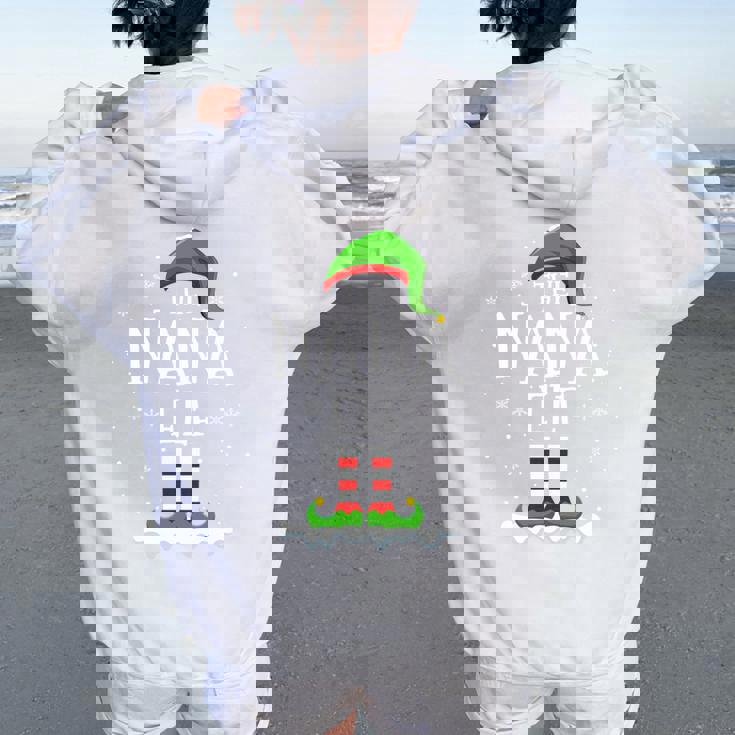 Nana Elf Squad Xmas Family Matching Group Christmas Elf Women Oversized Hoodie Back Print