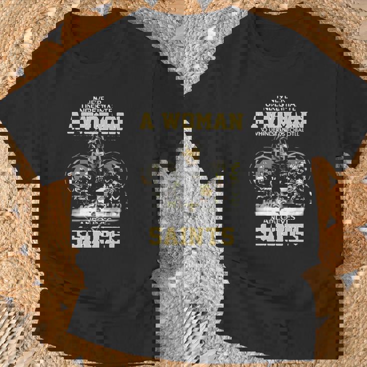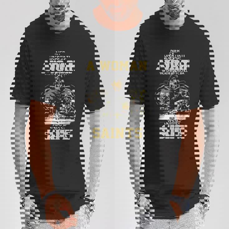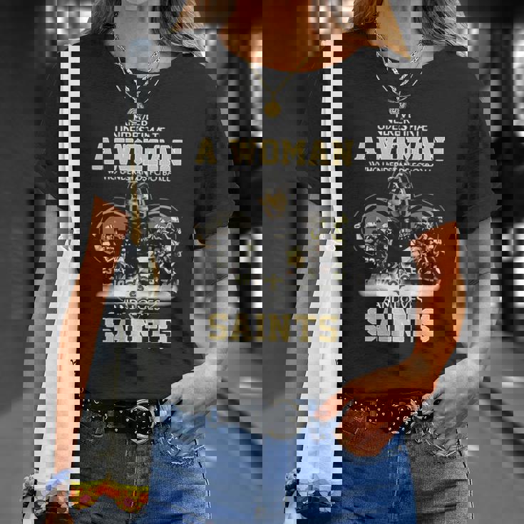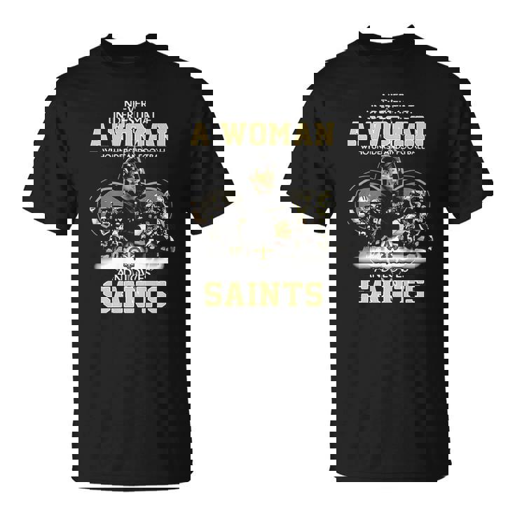 Never Underestimate A Woman Who Understands Football And Loves Saints T-Shirt