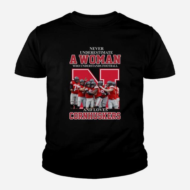 Never Underestimate Awoman Who Understands Football And Loves Cornhuskers Youth T-shirt