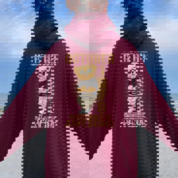 Experience the perfect blend of oversized comfort and eye-catching back print with October 46Th Birthday 1978 Awesome Teddy Bear Women Oversized Hoodie Back Print.