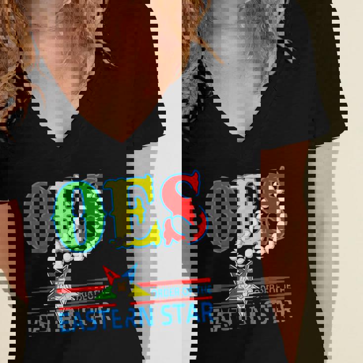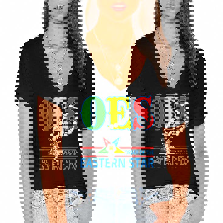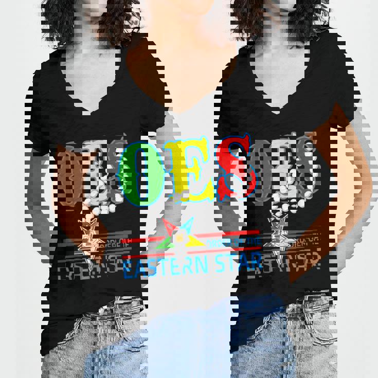 Oes Star Necklace Order Of The Eastern Star Mothers Day Women's Jersey Short Sleeve Deep V-Neck Tshirt