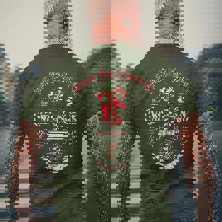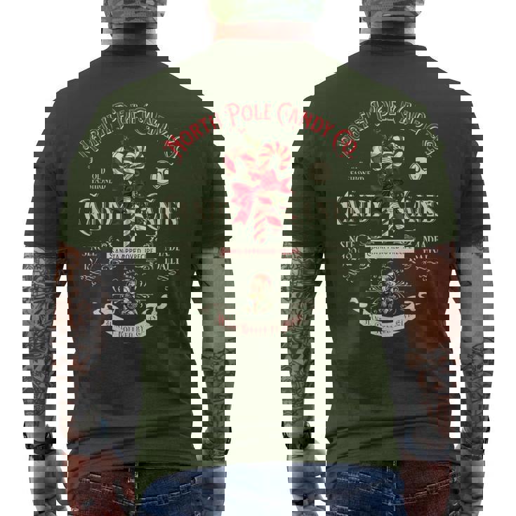 Old Fashioned North Pole Candy Cane Company Elf Christmas Men's T-shirt Back Print
