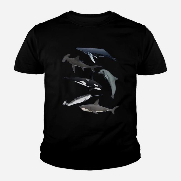 Orca Whale Great White Shark Narwhal Dolphin Sea Creatures Youth T-shirt