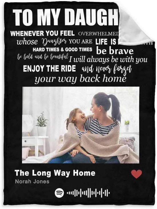 Personalized Bed Blanket With Picture To My Daughter From Mom Dad Black Custom Spotify Code Blanket Ultra-soft Micro Throw Blanket For Family Baby Girl Wife Husband Birthday Wedding throw blanket is the perfect gift for yourself and others! The ultimate gift for weddings, anniversaries, housewarmings, first home purchases, holidays, birthdays and more! This is the perfect gift for every occasion, any time of year!