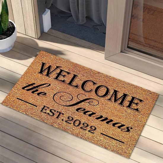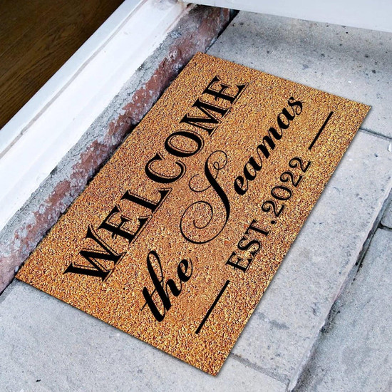 Personalized Welcome Family Name Est.2022 Rectangular Coir Doormat Doormats, Closing Gift Inspirational Quotes Funny Door Mats For Entrance Front Door Outside Entry Porch