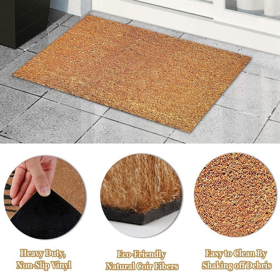 - Durable Material: This door mat is made of 0.5in (1cm) thick coir fiber; which is tough and strong, has excellent scratching properties, and helps remove dirt and moisture from any footwear. Coir fiber is known for its excellent water resistance, and it is elastic enough to be twisted without breaking. The coir doormat is very durable, beautiful, and has low maintenance costs. They can last for years. It is also equipped with a thick and durable non-slip PVC liner, ensuring that the outdoor mat is stable on the floor and can effectively avoid slipping.