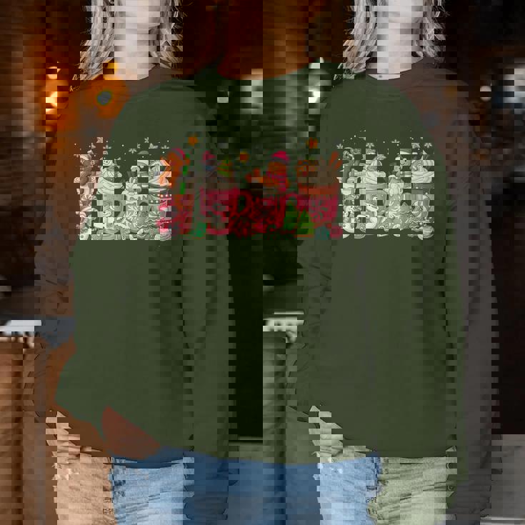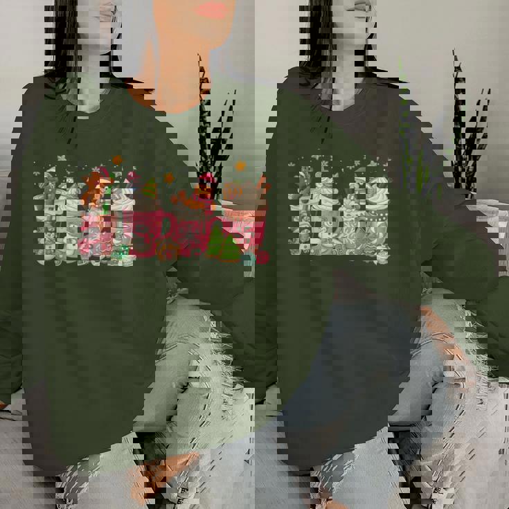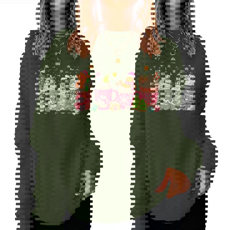 Pink Christmas Coffee Xmas Gingerbread Man Cookie Coffee Women Sweatshirt