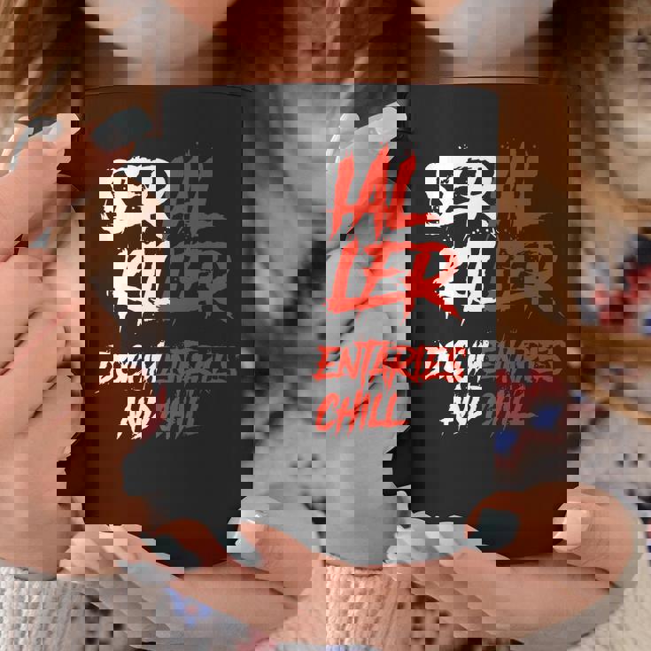 Serial Killer Documentaries And Chill Halloween Men Women Coffee Mug is a conversation starter, a gift of appreciation, and a durable companion for your favorite beverages.