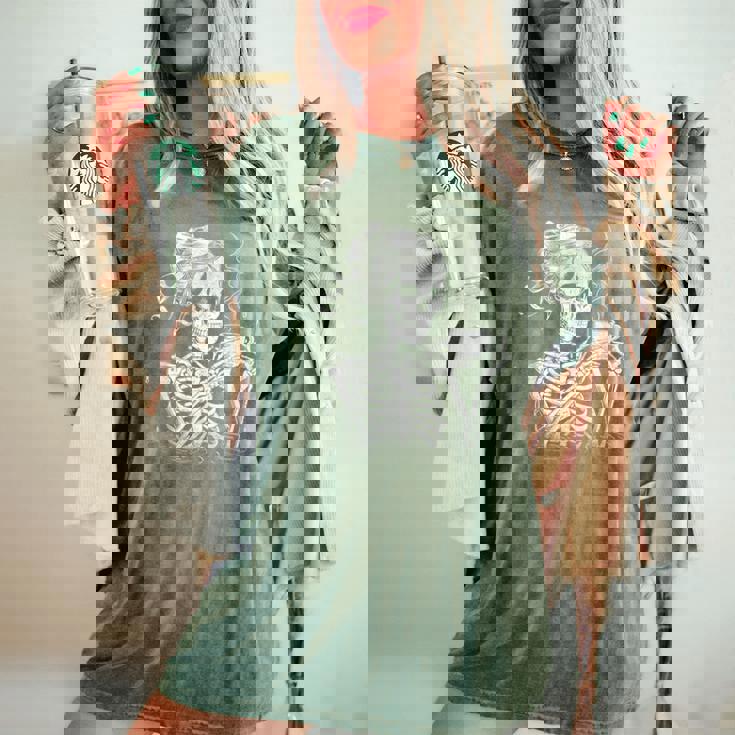 Skeleton Messy Bun Coffee Halloween Coffee Lover Mom Women's Oversized Comfort T-Shirt provides a vintage look that will remain for the life of the garment and adds a touch of timeless style to your wardrobe.