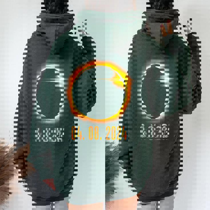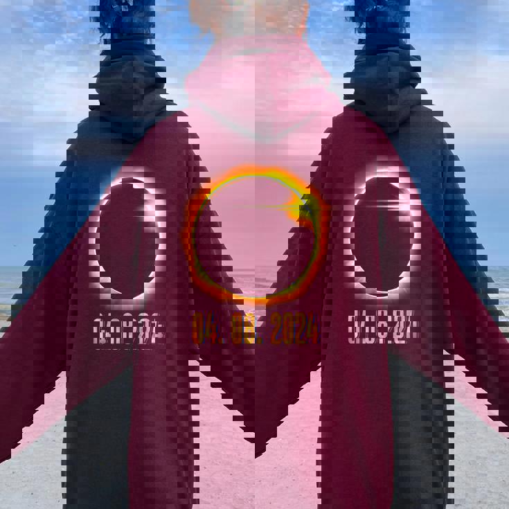 Experience the perfect blend of oversized comfort and eye-catching back print with Solar Eclipse 2024 American Totality Astronomy Women Oversized Hoodie Back Print.