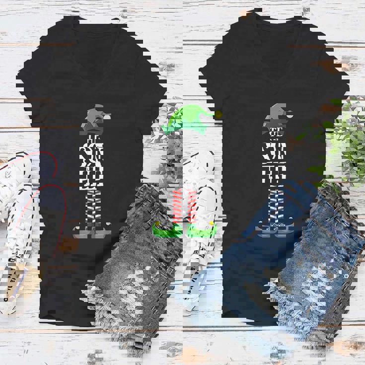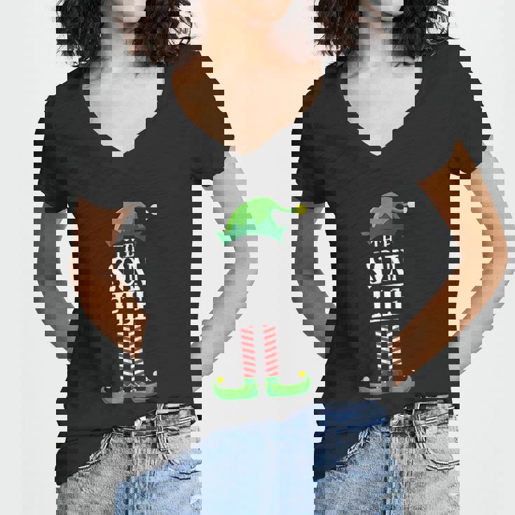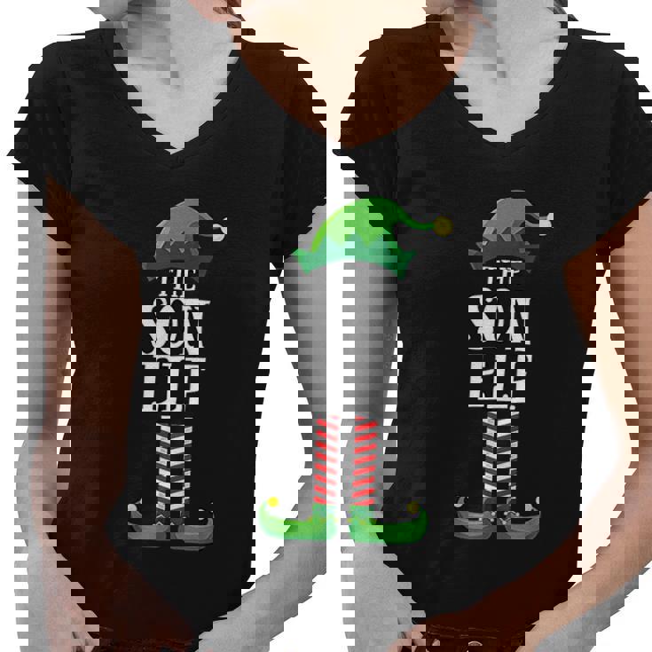 Son Elf Matching Family Group Christmas Party Pajama Women V-Neck T-Shirt