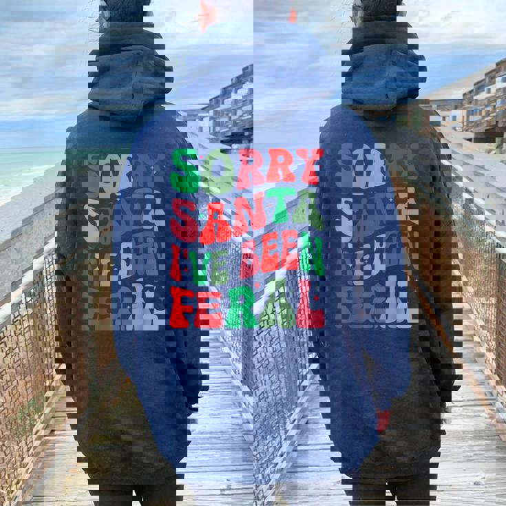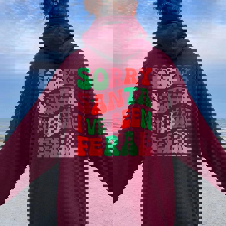 Sorry Santa I've Been Feral Groovy Xmas Christmas Women Oversized Hoodie Back Print