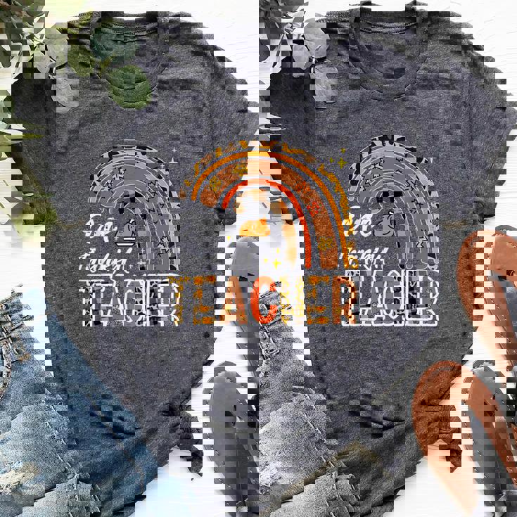Thanksgiving Thankful Teacher Rainbow Turkey Day Fall Women Bella Canvas T-shirt