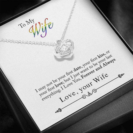 To My Wife - I May Not Be Your First Date - Love Knot Necklace is a symbol of never-ending love, representing an unbreakable bond between two souls. The message card can be personalized with photos, names, nicknames, dates, or text.