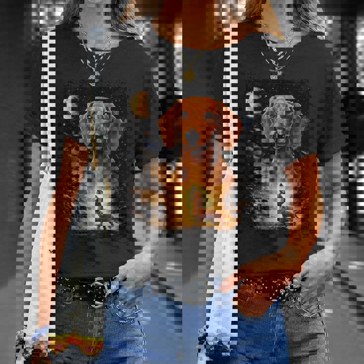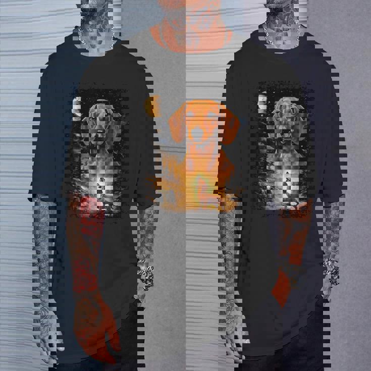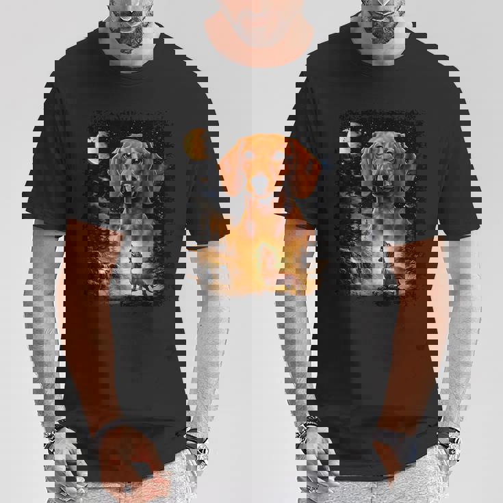Vintage 90S Dachshund Howling At The Moon Wiener Dog Mom T-Shirt