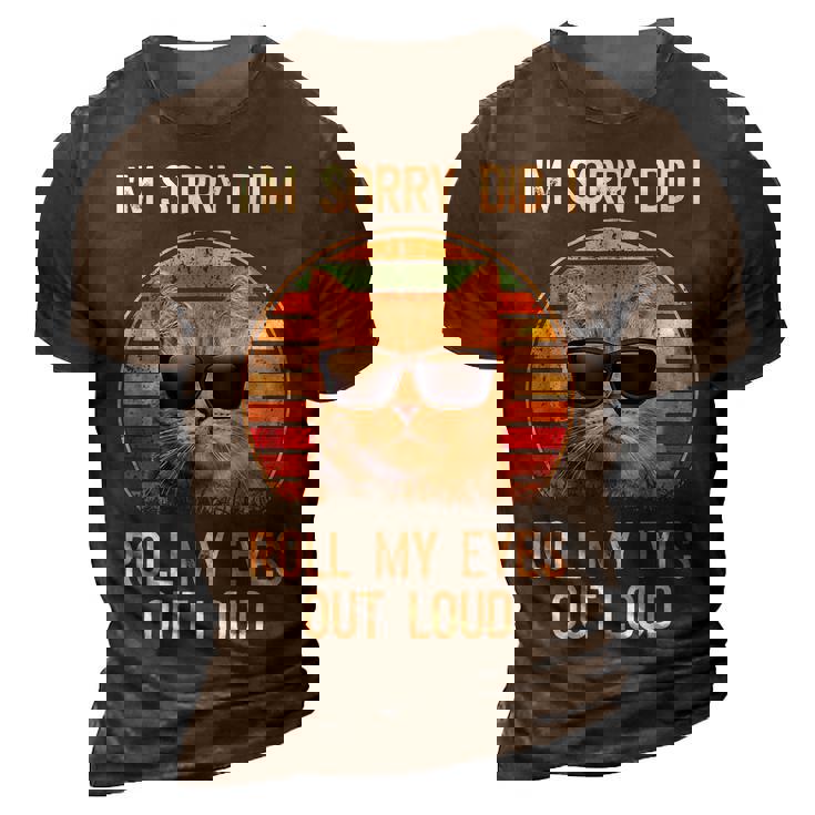 Vintage Im Sorry Did I Roll My Eyes Out Loud Sarcastic Cat 3D Print Casual Tshirt