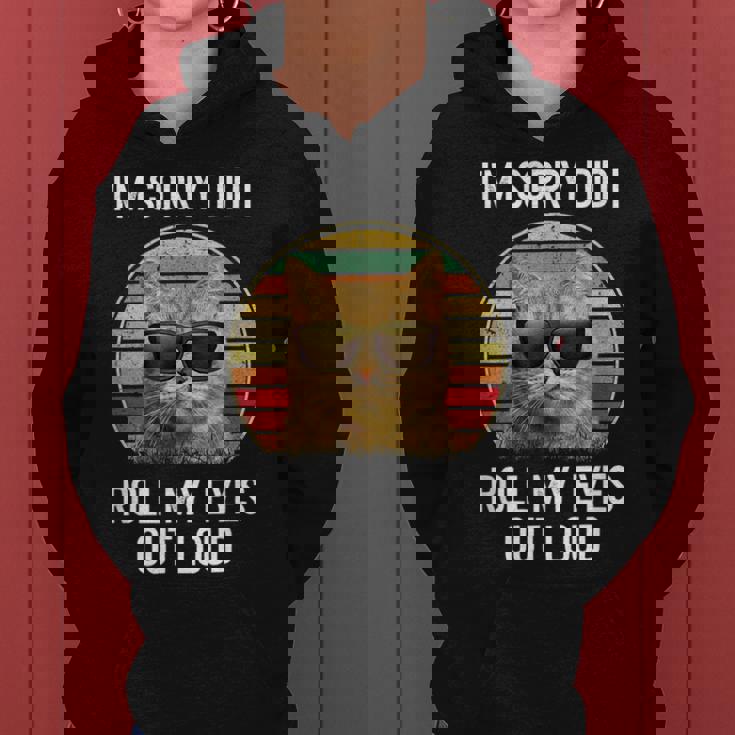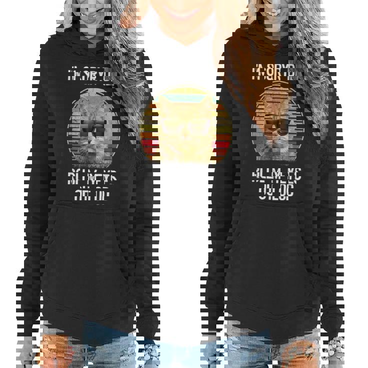 Vintage Im Sorry Did I Roll My Eyes Out Loud Sarcastic Cat Women Hoodie Graphic Print Hooded Sweatshirt
