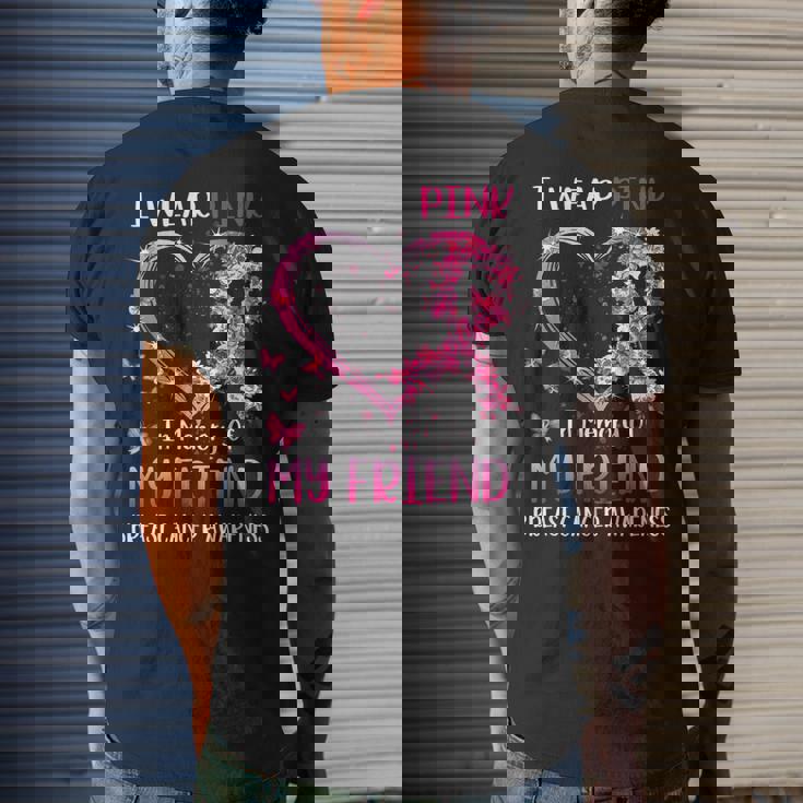 I Wear Pink In Memory Of My Friend Breast Cancer Awareness Mens Back Print T-shirt