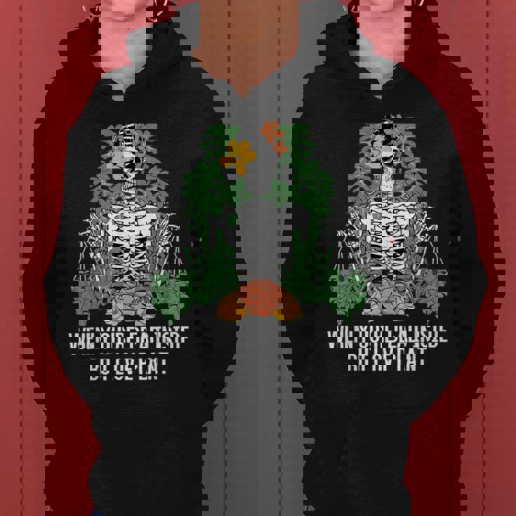 When You Are Dead But Inside Gardener Skeleton Funny Women Hoodie Graphic Print Hooded Sweatshirt