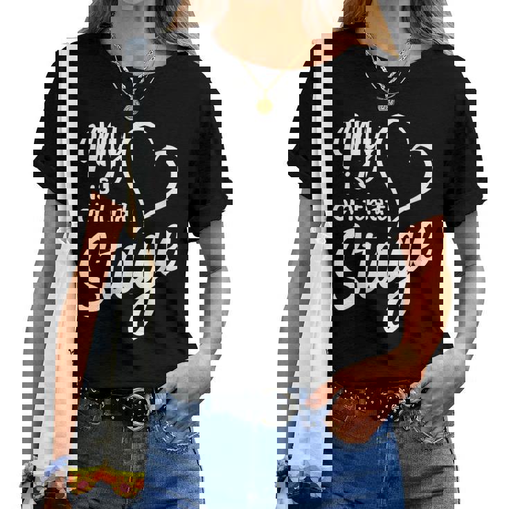 Women's My Heart Is On That Stage Dance Mom Music Dad School Play Women T-shirt